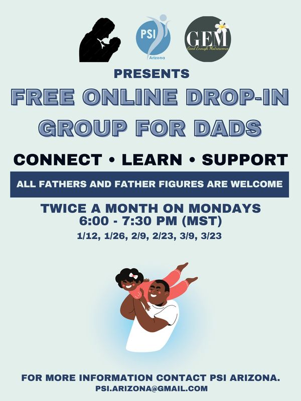 PSI Arizona is proud to announce that we will be sponsoring a free drop-in group for fathers. The drop-in group is open to any fathers and father figures that want to connect with other new dads.